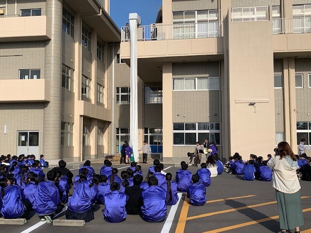 12月1日(月)、インフルエンザの流行等で延期していた火災避難訓練を行いました。3分余りで全員が運動場に避難した後、3階からの避難シューターを使った訓練を行いました。空気が乾燥する冬場、火災には気を付けたいものです。また、こういう時に全校生が無言で行動できるところが、本校の強みです。