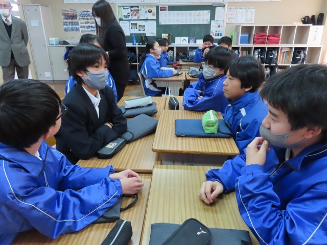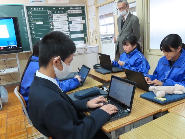 体育館が使用できないため、今年は12月12日(金)に3学年の縦割りグループを作って各9教室に分かれて人権集会を行いました。最初に生徒会役員がつくった「悪口の伝言(中継)」は誰のためになるのかという問題提起の動画を見た後、各グループで話し合いました。悪口の伝言は、学校生活でもよくあることだけに自分事として考えやすく、その場にいない第3者を共通の敵にしてその人を下げすむという構図は、いじめや差別にもつながる一面があるだけに、よいテーマだったと思います。生徒たちも、3年生を中心によく考えて話し合っていました。