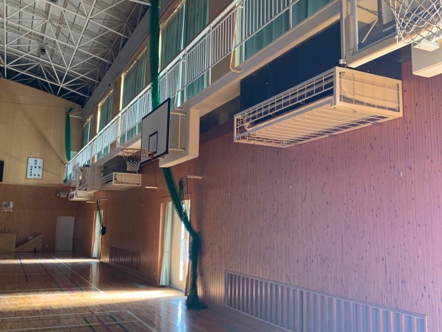 体育館エアコン設置工事がほぼ終わったため、2月19日(木)、3か月以上ぶりに体育館で全校集会を行いました。この工事は、夏場の熱中症や大地震が起こった際の避難所になることに備えてのものですが、体育館入り口にはAEDも取り付けられ、より便利に、いろいろな事態に備えて安心して使用できる体育館になりました。全校集会では、いろいろと備えられた体育館で、「自分の将来にも備えて欲しい」という話をしました。