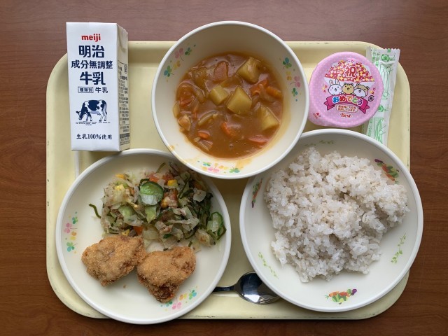 3年生の卒業を前に、給食もいろいろなメニューで雰囲気づくりに一役買ってくれています。3月に入って、3年生からのリクエストメニューの揚げパン・肉もっそ・ビビンバなどが登場し、3月4日は「お祝い赤飯」が、そして最後の給食となる6日は、入試直前ということで「カツカレー」でした。幼稚園に通った人で12年間もお世話になった、毎日当たり前のように食べていた給食も、卒業して食べられなくなったときにその本当のありがたさに気付くのかもしれません。そして、献立に込められた意味や思いを知るとより美味しく感じられます。「最高の生きた食育教材」=給食とも、今日でお別れです。