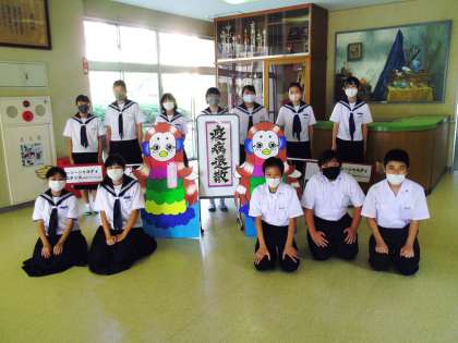 美術部員が、感染防止を願って制作してくれました。合唱コンクールが無事開催できますように。