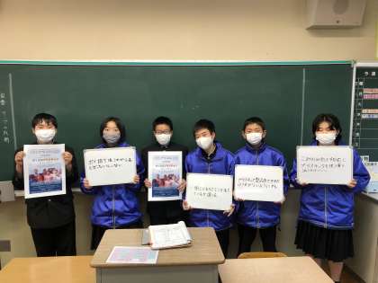 ○ 私は、こういった問題について、ここまで深く考えたことはありませんでした。だから、知らなかった事実がたくさんあって、こんなに深刻化しているんだと考えさせられました。今回、映画にでていた「15小学校」の生徒たちからは、言うだけじゃなく行動に移すということの大切さや難しさを学びました。どうすれば解決できるか、それぞれが考え、いろんな人にインタビューしたりしている姿は本当にすごいなと思い、私もできることはやってみようと思いました。今後の生活に生かしたいです。