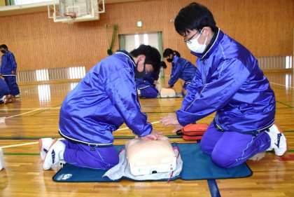 日赤香川支部より2名の講師をお招きして、実習を行いました。真剣なまなざしで、実習していました。