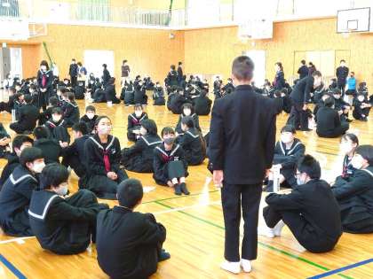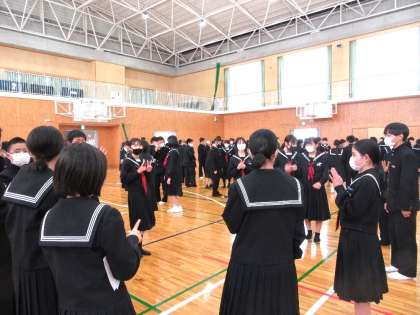 生徒会役員が、1年生と2・3年生の対面式を、縦割りグループでの交流として実施しました。