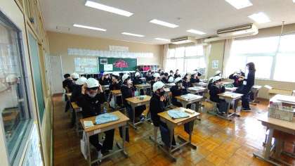 いつ起きるかわからない災害に備えて、5月2日(月)に町内ウォークとして、津波発生時の避難場所となっている葛山(くずやま)登山を行います。防災ヘルメットの確認も行いました。