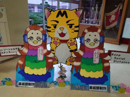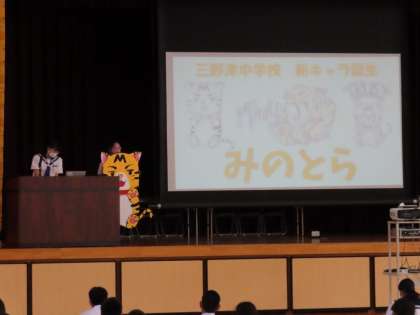 生徒会が企画・募集し、「三野津中学校キャラクター総選挙」が行われました。激戦の中、磯崎さんが、伝統工芸品「はりこのとら」をイメージして、虎らしいキリっとした表情でありつつ、可愛げに溢れた愛されるキャラクターとして作成した「みのとら」が選ばれました。