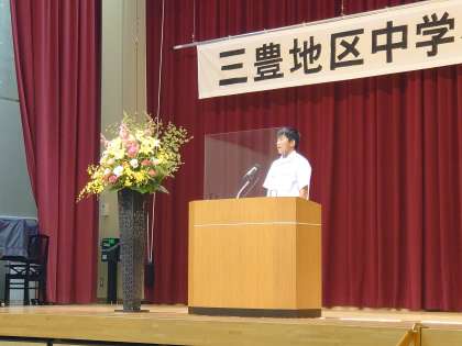 「第73回三豊地区中学校社会を明るくする運動弁論大会」が、7校の中学校の代表者が参加して、開催されました。三野津中学校からは、論題「感謝すること」で、3年生の守長さんが参加しました。家族愛をテーマとした内容で、心がほっこりしました。