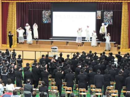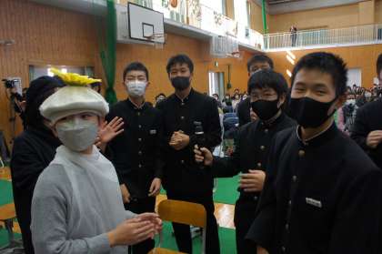 合唱前の「新旧生徒会役員によるパフォーマンス」
