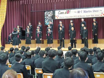 初めての合唱コンクール、どの学級もよく頑張りました。