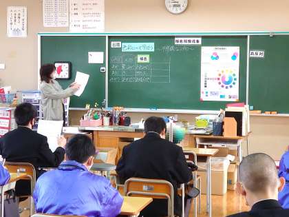 <目標>補色残像現象を体験し、12色相環の中で、補色がどんな色のことか分かる。