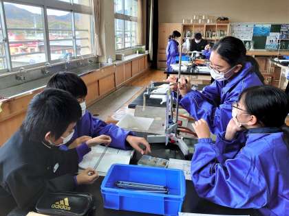 「ばねを引く力とばねののびにはどのような関係があるのだろうか」を目標に、実験をしていました。