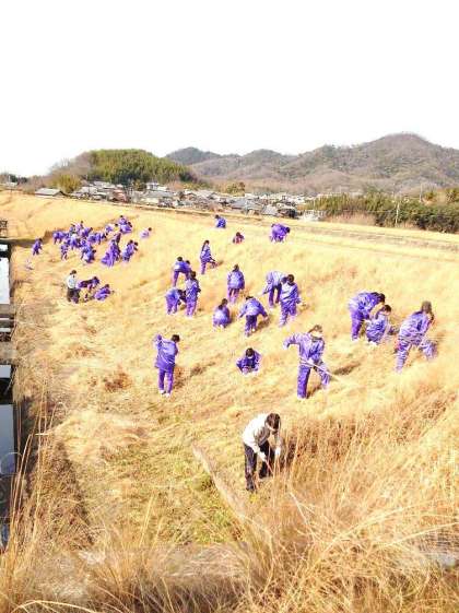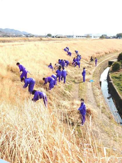 慣れない鎌(かま)を使っての河川清掃を行いました。冬の晴天の中、生徒は一生懸命に取り組みました。2年生のみなさん、お疲れさまでした。