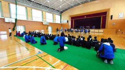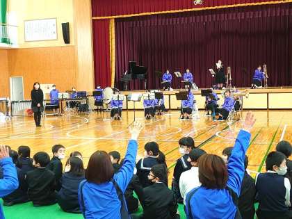 3小学校の小学生(学童)との交流を実施しました。吹奏楽部の演奏・パフォーマンスで、楽しい時間が過ごせました。