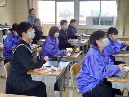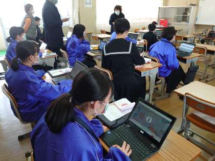 今回は、ネイリー中学校が環境に関するクイズを作成して、タブレットで互いに回答しました。