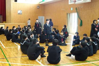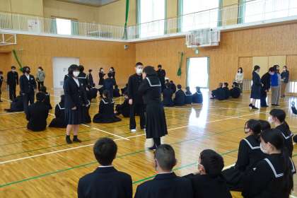 4月10日(月)、新入生と2.3年生の対面式が行われました。全体でのクイズや少人数でのゲームが行われました。新入生の緊張もほぐれ、交流が深まりました。