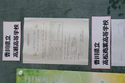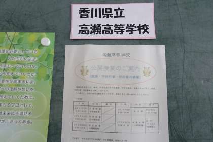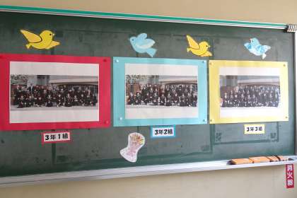 3年生のオープンスペースには、年度初めの学級ごとの記念写真とともに、高校のオープンスクールや授業公開の案内が掲示されています。進路選択の年ですね。