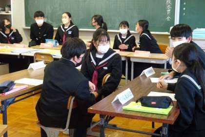 昼休みに初めての全校委員会が行われ、各クラスの委員長と各部委員会の委員長が、学校への要望事項や新たなボランティア活動について意見を出し合いました。