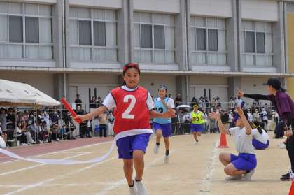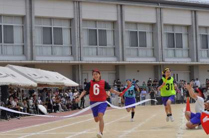 選抜リレーが行われ、各クラスの精鋭が力強い走りを見せました。