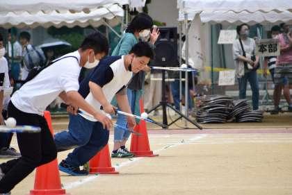 体育祭 スプーンリレー 公開日 2023/06/01 更新日 2023/06/01 学校全体 令和5年5月27日(土) 保護者の皆さんや卒業生、小学生、職員が参加して楽しくスプーンリレーが行われました。