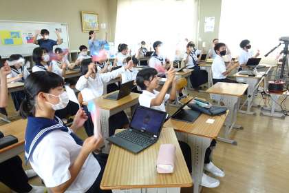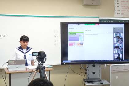 台湾のネイリー中学校との6回目のオンライン国際交流を行いました。「グリーンライフ」をテーマに発表したり質問したりしました。クイズ形式の交流もして盛り上がりました。