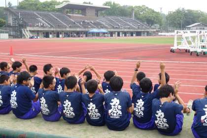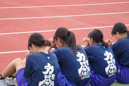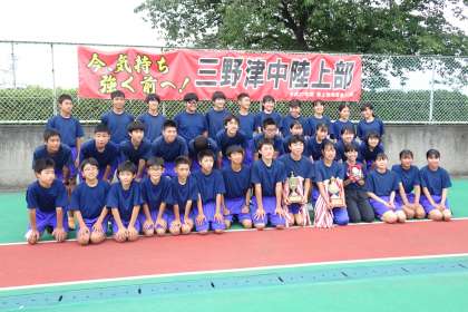 地区総体の先陣を切って、陸上競技の大会が開かれました。多くの生徒が活躍し、男子も女子も総合優勝という成績でした。