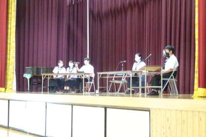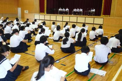 学級旗発表会の後、引き続いて生徒総会が開かれました。今年度の活動方針や予算が決定しました。