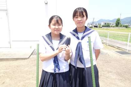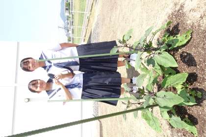 環境委員が世話をしてくれている農園ではじめてなすびが実をつけました。