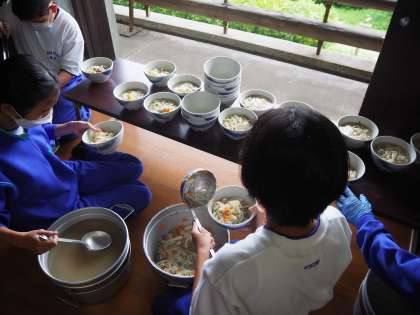 2日目の昼食はうどんでした。自分たちで作り、箸も自分たちで作りました。