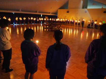 2日目の夜はキャンドルサービスをしました。最初は厳かな雰囲気で始まり、第2部は楽しくゲームをしました。