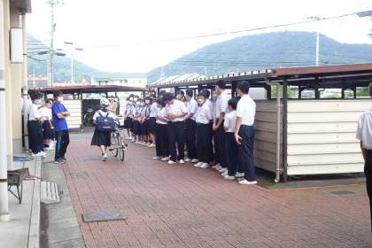 地区総体の本格化を前に、部活動単位のあいさつ運動が始まりました。
