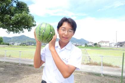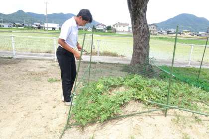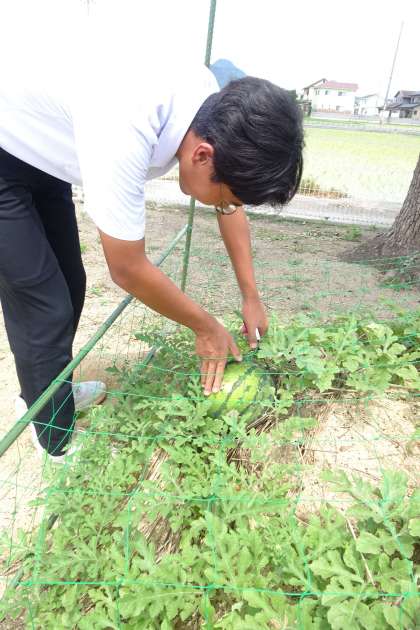 環境委員会が水やりなどをして育ててきたすいかが大きくなり、収穫しました。