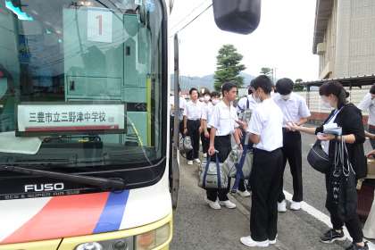 修学旅行の出発式です。6月は台風で延期になり、待ちに待った修学旅行です。