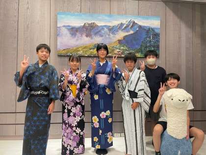 10家庭に分かれてホームステイをしました。どの家庭でも大歓迎してくださって、色んなところに連れて行ってくれたり、様々な体験をさせていただいて、とても楽しかったようです。浴衣を持って行っての着付けは大変好評でした。
