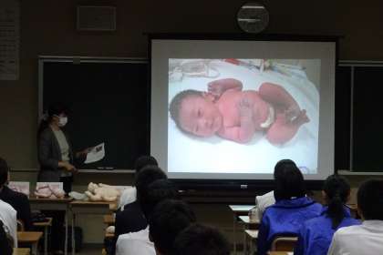 2年生が「いのちのせんせい」派遣授業を受けました。これは香川県教育委員会が、「命」と向き合いながら仕事をしている方を派遣してくださる事業です。今回は、助産師の方が講師として来てくださり、妊娠や出産について話をしてくださり、生きることの意味や命の大切さについて考えました。