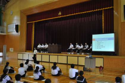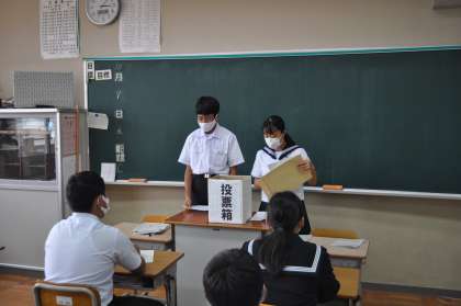 任期満了にともない、生徒会役員改選が行われ、7名の新生徒会役員が選出され、新たなスタートとなりました。