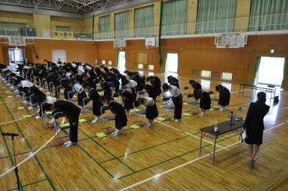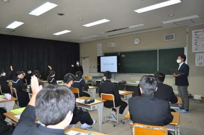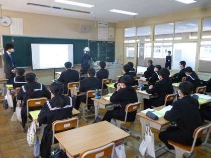 社会人への一歩として、挨拶・礼儀作法・言葉遣いなどのマナーを学習しました。また、生徒が将来、社会の中で自分の役割を果たし、自分らしい生き方を実現するための力を身につけるために、多様な職業や仕事についての理解、自分なりの勤労観・職業観をもてるように出前授業を行いました。8コース(検察庁、保育士、介護福祉事業、食品メーカー、ホテル業、建設業2社、インテリア建材)