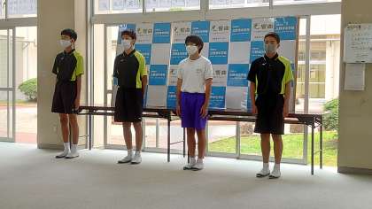 3年生が、総体やコンクールに向けての決意表明をしました。頼もしく感じた時間でした。「勝ちに不思議の勝ちあり、負けに不思議の負けなし」です。最後の最後まで、あきらめず、自分を、チームを信じ、力を合わせチャレンジしてください。