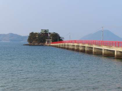 津島神社は1593年にできたものだと説明を受けました。そして現在、年に1度だけ通ることができる245mの橋は、1日半かけてみんなで板を置いていくことを聞いて驚きました。