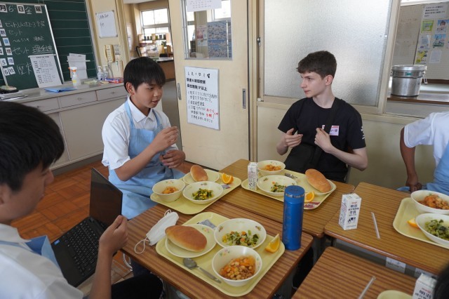 6月6日(金)フィンランドのヘルシンキ音楽学校の58名が、今回の日本ツアー8校のうちの1校として本校を訪れ、素晴らしい演奏を披露してくださいました。その後は各クラスに分かれて、一緒に給食を食べ、交流しました。