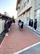 合唱コンクールが終わり、朝の挨拶ボランティアが始まっています。三野津中生の登校...