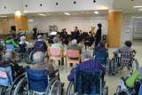 令和6年2月3日(土) 吹奏楽部がみの荘を訪問しました。曲を演奏したり、童謡を一...