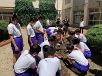 6月25日(水)、三豊モリンガ株式会社の田中様のご指導の下、3年生が中庭にモリン...