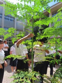 9月22日(月)3年生が育ててきたモリンガの収穫を行いました。日に日に成長し、3...