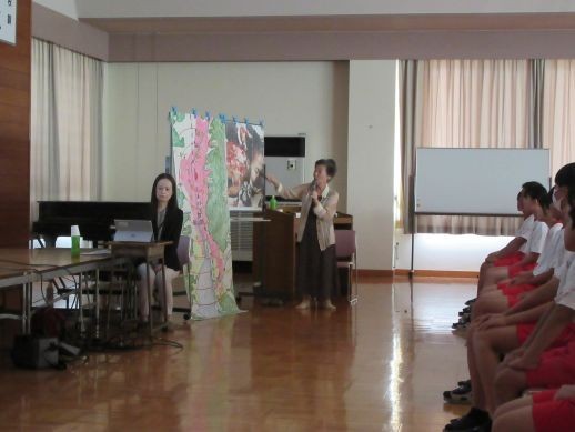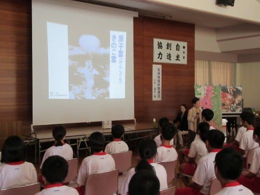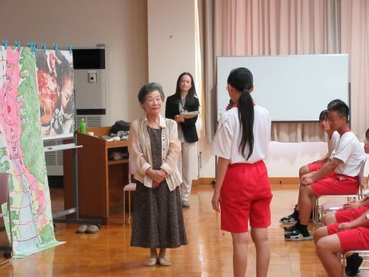 本日、太平洋戦争時に長崎市で被爆された方をお招きして、体験講話を聴かせていただきました。本校の修学旅行先が沖縄であることと、広島市の原爆ドームや平和資料館に家族と行ったことはあっても、長崎市に行った経験はないだろうと考え、開催を希望しました。2つの原爆を落とされ、その直後、戦争が終了してもうすぐ80年になります。戦争体験を直接聴ける機会も失われつつあります。今回、貴重な体験談を聴かせていただき、命について再認識することで、心が少し豊かになったような気がします。わざわざ長崎からお越しいただき、本当にありがとうございました。
