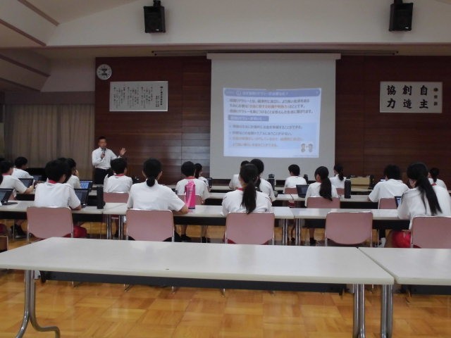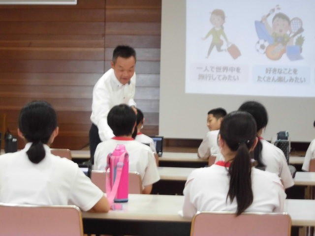 本日の午後、2年生が職場体験学習の一環として、金融教育を学びました。町内の銀行から講師の先生に来ていただき、「大人になる前に知っておきたいお金の話」について説明してもらいました。5時間目に、お金を「使う」「貯める」「増やす」「備える」「借りる」についての具体的な注意点を聴き、6時間目はグループでのボードゲームを通して、会社を経営しながら、資金を増やすためにはどうすれば良いかを考えました。