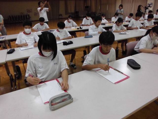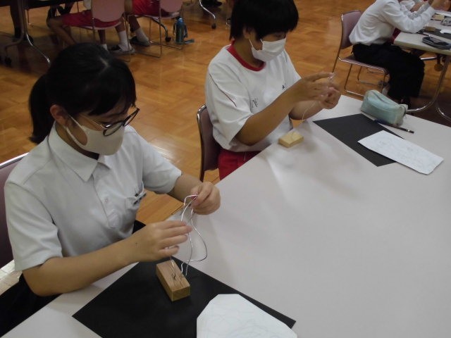 本日の午後、2年生が「瀬戸芸アーティストプログラム」に参加しました。今回来校してくれたのは、3年前に粟島で作品づくりを行った佐藤悠さんという芸術家さんです。今回は、「新しい良いものを生み出そう」というテーマで、真っ白な紙に1本の線を描き、その線の中からお気に入りの線を見つけ、それを針金で立体的に表現しました。どんなものにも価値を見い出せる力のことを「創造性」と呼ぶことを教わりました。