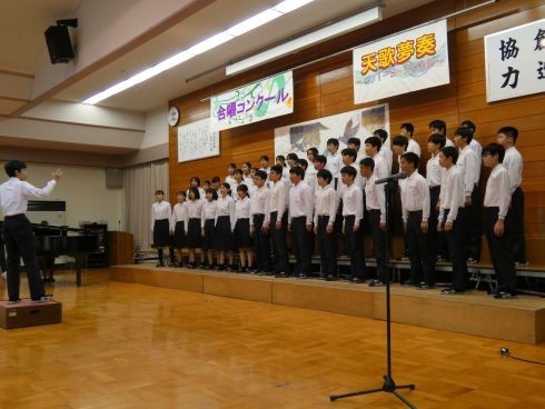 22日(水)の午後、合唱コンクール(第二部)を行いました。第一部で合唱を披露できていなかった3年生が。これまでの努力の成果を披露しました。さすが3年生と言わんばかりの圧巻な歌声を披露しました。3年生の保護者の皆様には平日の午後に参観していただき、誠にありがとうございました。