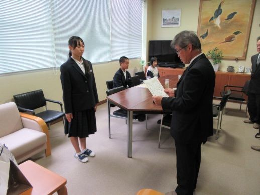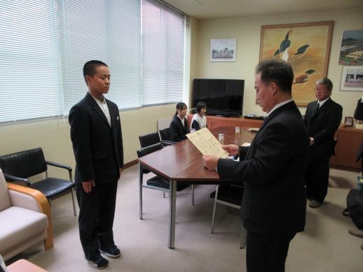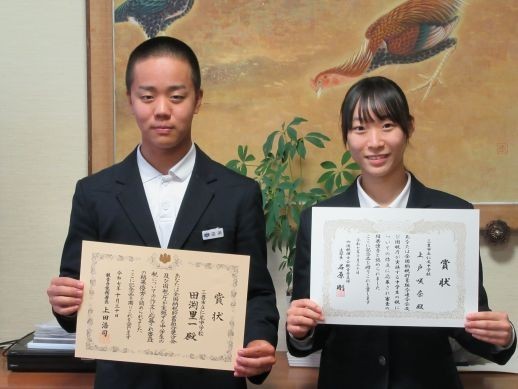本日の放課後、税務署の方が来校して、表彰式が校長室にて行われました。3年生2名が見事に授賞しました。おめでとうございます。