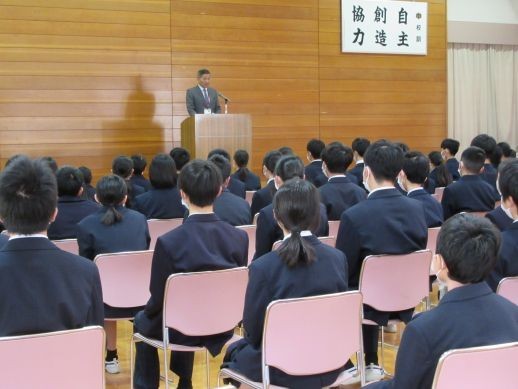 本日から3学期が始まりました。締めくくりの時期であるとともに、次の学年に向けての準備期間でもあります。1つ1つの行事を成長に向けての節目にしながら、干支にちなみ「大地を蹴って走り出す馬のように」力強く、そして確かな歩みを自分の目標や夢に向かって進めてほしいと願っています。帰りの会の後には、今年度2回目の父母ヶ浜清掃ボランティアを行いました。水曜日の放課後の空きがなく、本日の実施になりましたが、生徒21名と教師4名が参加して、約30分間、海岸清掃を行いました。寒い中、参加してくれた皆さん、ありがとうございました!