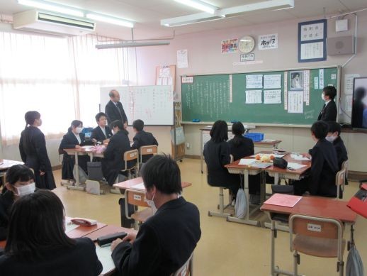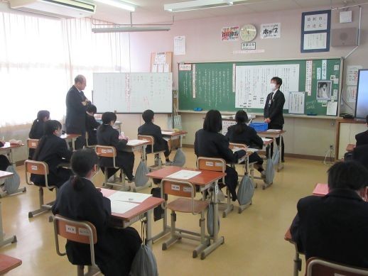 本日の3・4校時に、1年生が人権・同和問題学習を行いました。事前に社会科で部落差別の歴史について学び、本日は三豊市人権教材集の「人の値うち」という資料で学習を深めていきました。3校時は「人の値打ち」は何で決まるかや江口さんの詩の内容確認、そして「なぜ、着物や肩書き、学歴、生まれたところで決めてはいけないか?」について個人やグループで考えました。4校時のVTR視聴で江口さんの心情により深く迫りながら、部落差別を含めた差別について再度考えました。最後に、教師自身の体験談を語りながら、「人間の心のなかには弱い心があるけれど、そんな弱い心に負けない人間になってほしい」「自分の値打ちに気づき、自分にも他人にも優しさをもってほしい」というまとめで授業が締めくくられました。